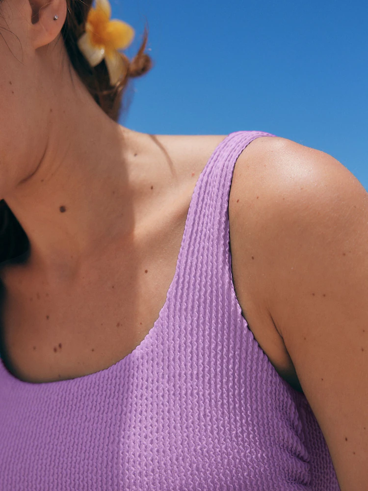 + Free ShippingWith a flattering silhouette thanks to tummy shaping mesh and a scoop neckline, this swimsuit has a non-padded and non-wired bust with a high-cut leg and shoulder straps, finished with a textured feel.