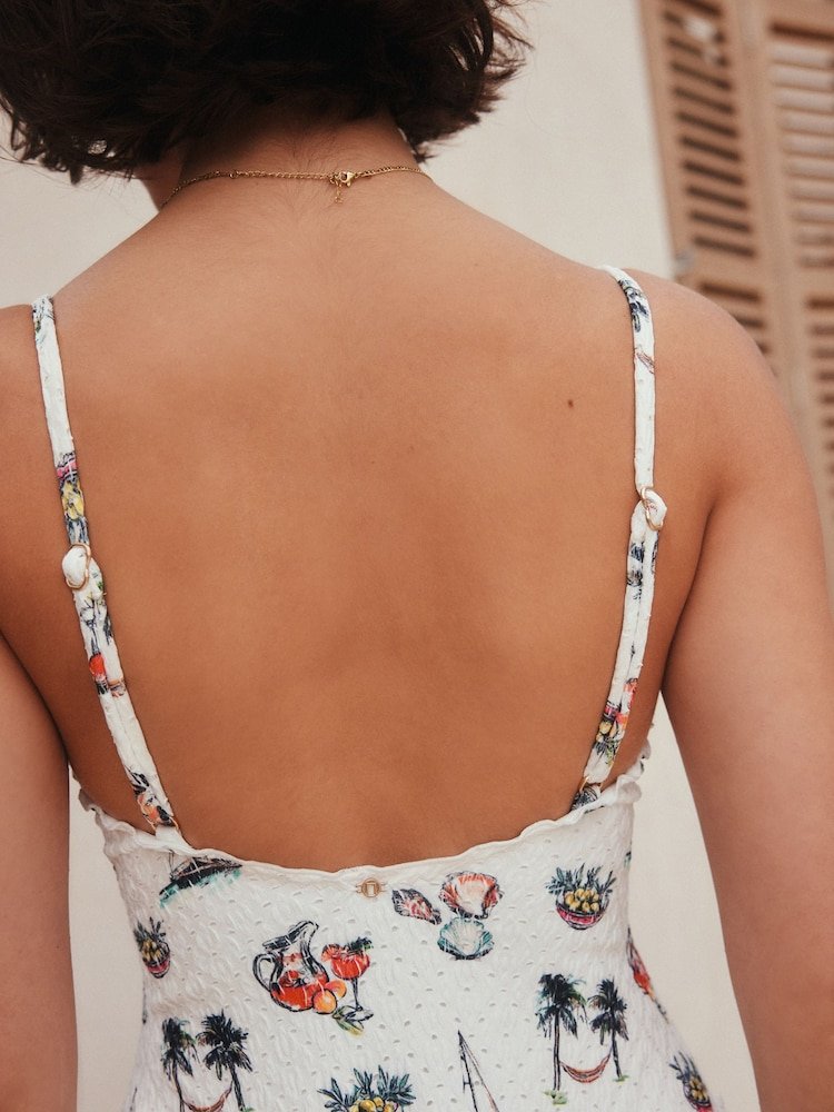 White Conversational Broderie Plunge Tummy Control Swimsuit